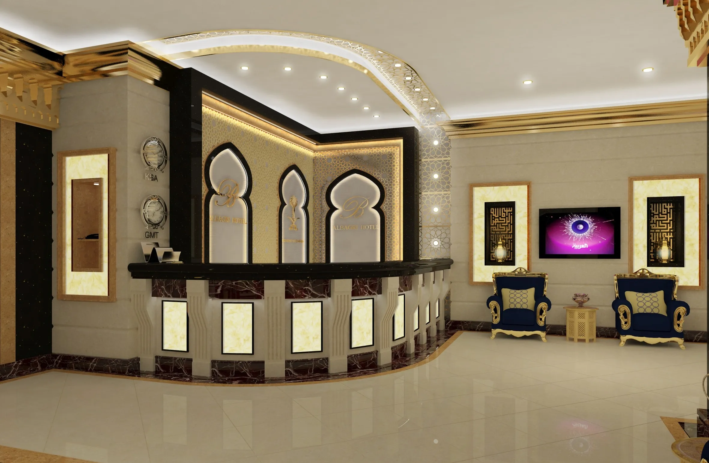 Al-Aziziyah Refahia Hotel is a four-star hotel located in the Al-Aziziyah district of Makkah Al-Mukarramah, developed on a land area of 850 m². The project consists of a ground floor, mezzanine floor, a dedicated restaurant floor, a services floor, and 14 hotel residential floors. The hotel accommodates a variety of guest room types, including standard rooms and suites, designed to provide a comfortable and functional hospitality experience that meets the needs of visitors and pilgrims while maintaining a balanced architectural and interior character. Our role was developing the interior design concepts and detailed designs for all finishing works, monitoring and supervising the execution of interior works to ensure alignment with the approved designs, and providing continuous technical and design support throughout the construction phase.