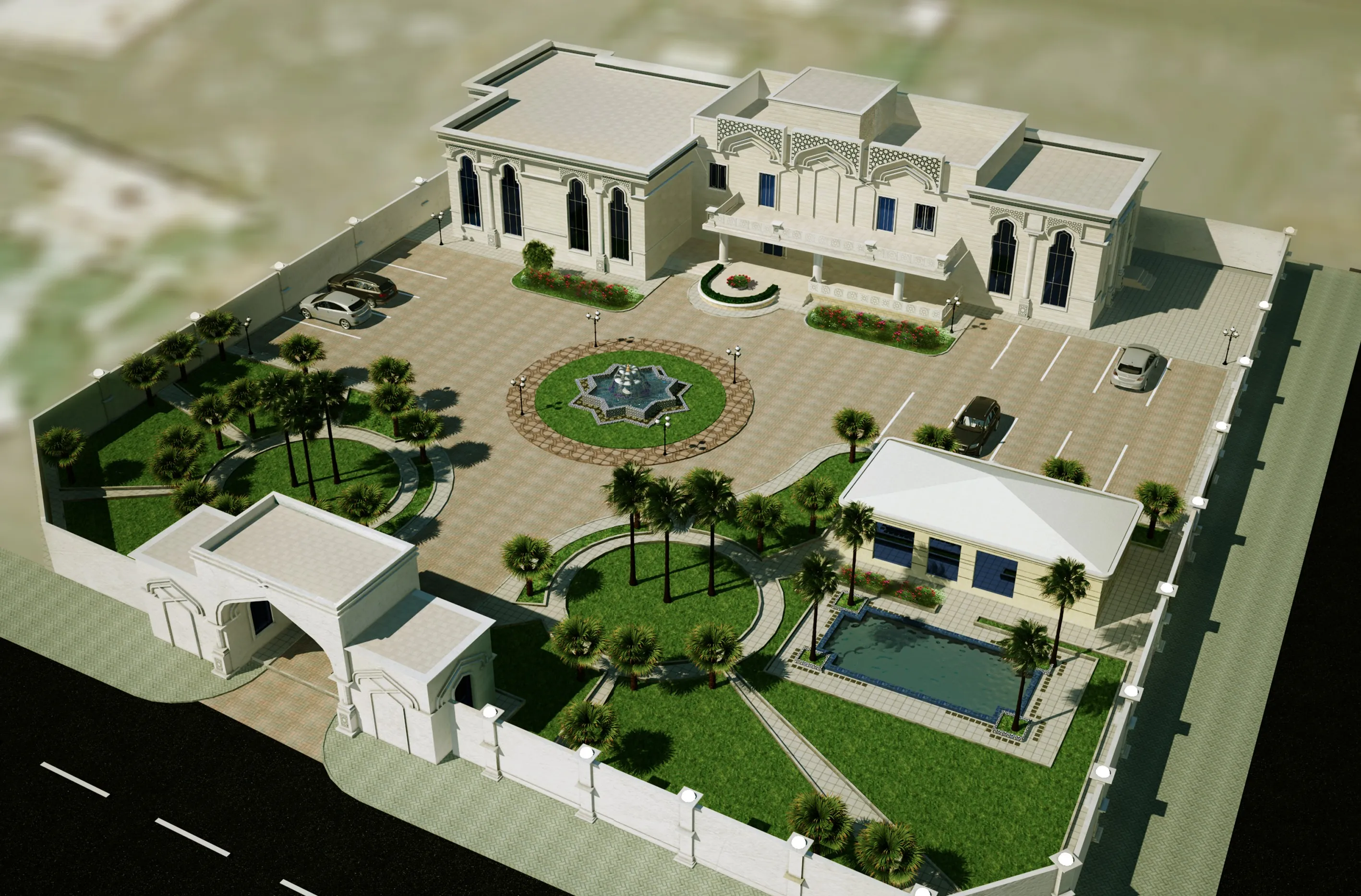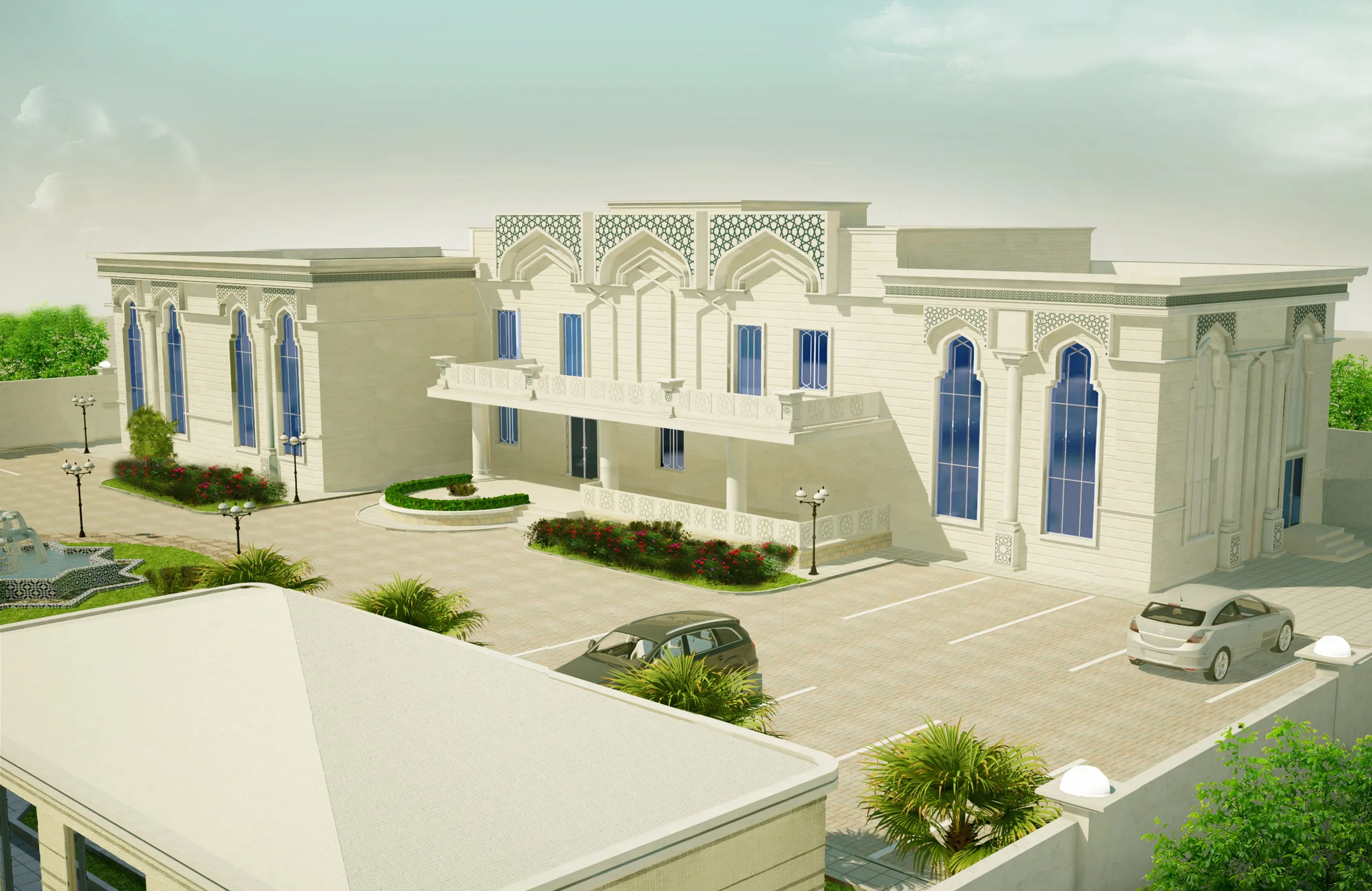 Al-Dhiyafah Palace is a luxurious building designed to host guests, featuring multiple facilities such as bedrooms, elegant lounges, a fully equipped kitchen, a private garden for relaxation, and a Majlis Diwan for a unique social experience, ensuring comfort and luxury for all visitors.